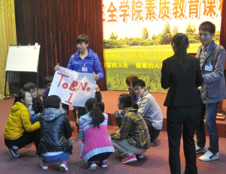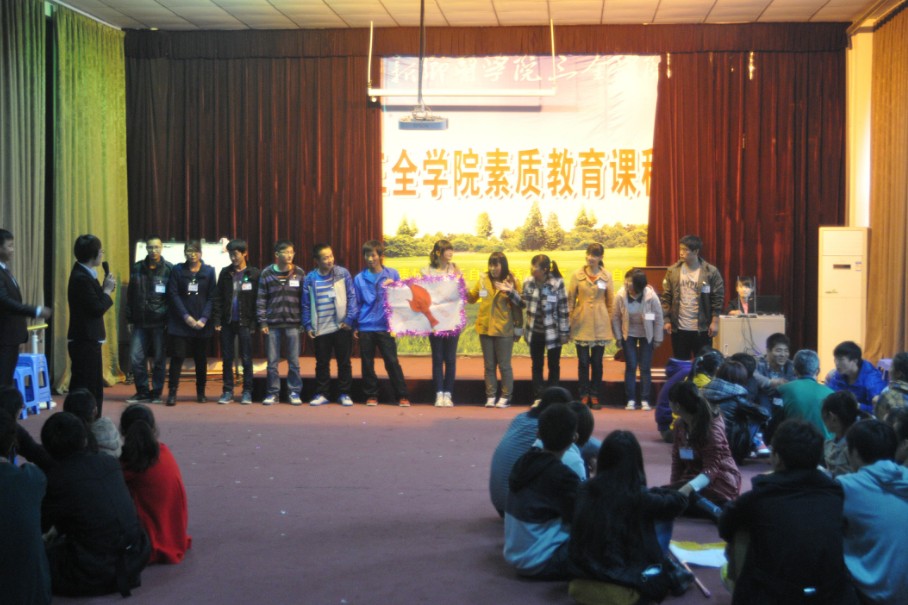 本次素质拓展分为“活在当下”、“领袖风采”等六个模块,在拓展的每个模块都有相应的互动游戏。主讲老师和四位助教引导同学们分组进行游戏,每组为一个团队设有队长、学习总监、动力总监各一名,所有的比赛均在保证团队完整性和协调性的前提下进行。同学们对于这种互动参与式的课堂很感兴趣,都非常积极地参与到游戏中去,为使自己的团队获胜而努力。学生干部们投入的比赛和默契的配合展示了我院学生的凝聚力和团队协作意识。整场拓展活动中同学们都认真听从老师指令,带着饱满的激情和活力全身心的参与其中,大家的表现赢得了老师们的肯定和赞赏。