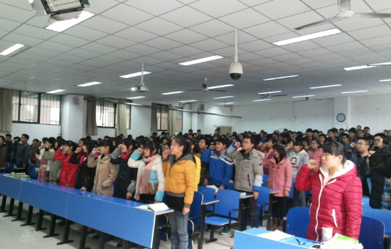 为了更好的迎接期末考试的到来,明确考试制度,树立良好的考风考纪,我院于12月19日在问学楼101教室举行诚信考试宣誓大会。本次会议由辅导员刘凯老师主持,我院13级、12级、11级、10级全体同学参加了这次会议。