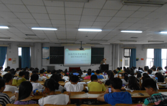 对于逐渐临近的2014年上半年英语四六级以及期末考试,为了提高同学们公平、公正、公开考试的意识,建立良好的的考风考纪,我院特于6月13日中午十二点在正学楼第三大教室举行四六级英语动员大会暨诚信考试宣誓大会。我院辅导员刘凯老师作为本次会议的主讲人,我院全体同学共同参加此次会议。