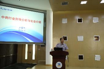 王国生董事长从中医药行业的发展历程、中药产业的优势和劣势以及佐今明药业集团的发展概况等方面进行了阐述,并与学生就中药行业的发展趋势和同学们今后的就业意向进行了深入讨论。