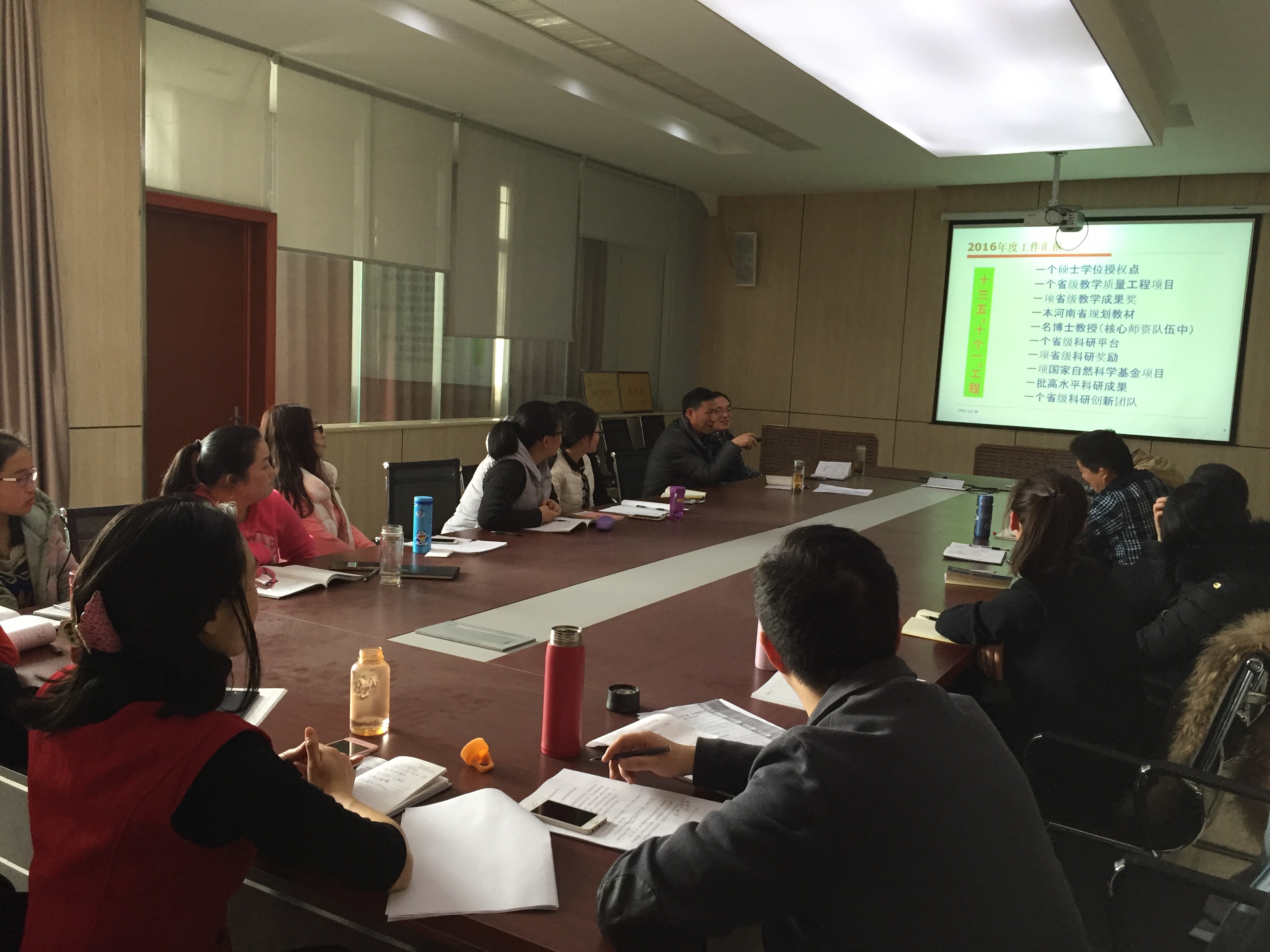 12月30日上午,我院在院会议室召开2016年年度工作汇报会,副院长卢龙斗、石晓卫出席,全体教职工参加了会议。 各教研室、实验教学中心和...